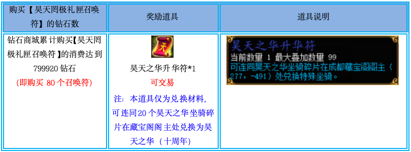 2、【昊天罔极礼匣召唤符】仅限钻石商城购买,通过摆摊购买、互相交易、邮件领取、拍卖购买等非钻石商城购买方式获得的,均不计算在活动内;
